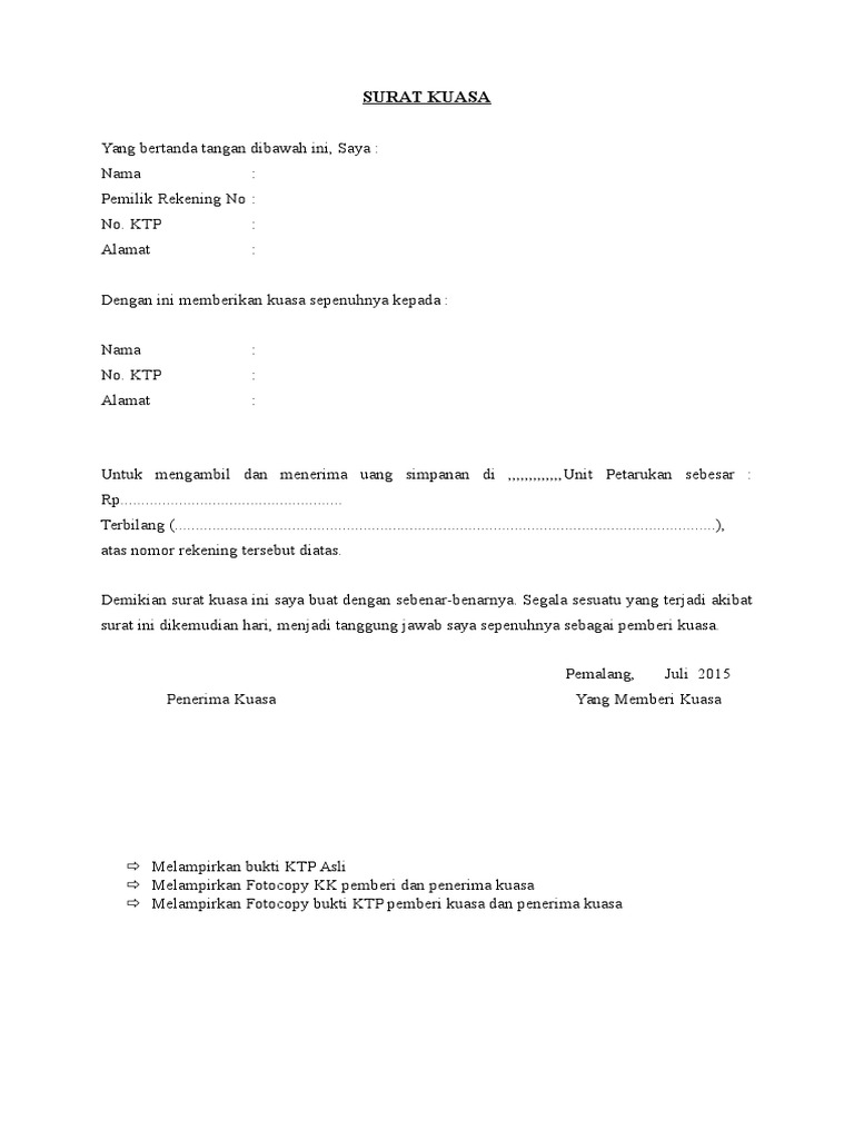 Contoh surat kuasa pengambilan uang. Contoh surat kuasa pengambilan uang di bank. Sebagaimana surat kuasa pada umumnya, kuasa pengambilan uang harus. Benar format 770 x 1090 pixel download contoh surat kuasa dengan penulisan yang baik dan format 750 x 1153 pixel download doc contoh surat kuasa pengambilan uang di bank latif. Pada umumnya, pengambilan uang oleh pihak ketiga yang. Surat kuasa pengambilan gaji pensiun di bank bri. Sebetulnya cara pembuatanya hampir sama dengan surat kuasa jenis lainnya yaitu terdapat nama, alamat, nomor telpon dan keterangan tujuan atau alasan surat kuasa tersebut dibuat. Surat kuasa dibuat untuk berbagai macam tujuan, salah satunya surat kuasa pengambilan uang. Dengan beberapa contoh yang kami berikan. Dengan ini saya selaku pemberi kuasa memeberikan kuasa kepada isteri saya yang bernama candra kurniawati (penerima kuasa) agar dapat melakuakan pengambilan uang secara tunai dengan jumlah sebesar rp. Doc surat kuasa penarikan cek roynal pasaribu academiaedu. Untuk mengonsep surat kuasa, tentunya akan menggunakan microsoft word. Contoh surat pernyataan kematian dari ahli waris contoh seputar surat.