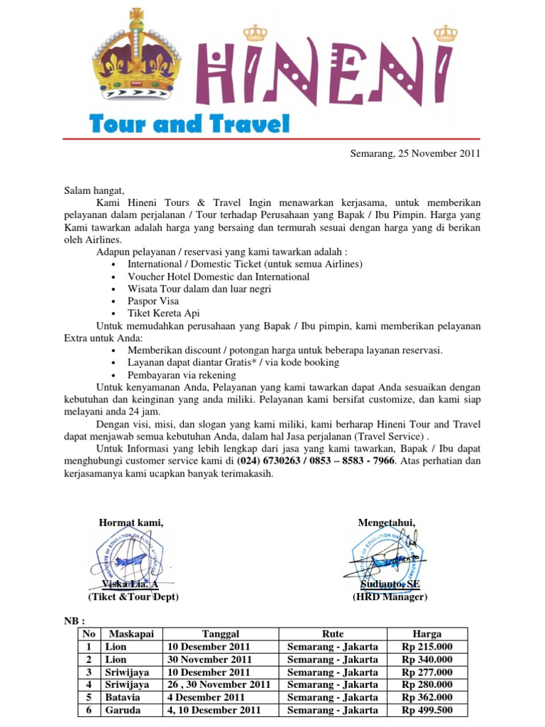 Surat Penawaran Kerjasama Hineni Tour And Travel from imgv2-1-f.scribdassets.com Kerjasama antara dua orang pebisnis. Nah, agar memudahkan kita semua dalam berurusan dengan pihak travel, harus pihak sekolah menyiapkan hitam di atas putih. Contoh surat perjanjian adalah surat yang mengatur tentang hak dan kewajiban dua orang yang melakukan sebuah kesepakatan atas suatu perkara dan biasanya surat perjanjian ini ditulis untuk menangani kegiatan penting terutama masalah harta ataupun uang dengan jumlah yang tidak sedikit. Contoh spk di atas bisa anda download format doc di sini. Kerjasama antara sebuah perusahaan terhadap individu yang ingin dipakai jasanya. Dengan adanya contoh, maka anda bisa membuatnya dengan lebih mudah karena hanya tinggal meniru dan mengubah sesuai kebutuhan anda. Hal ini dilakukan supaya terhindar dari kontroversi yang terjadi di kemudian hari. Tata penulisan contoh perjanjian kerjasama.